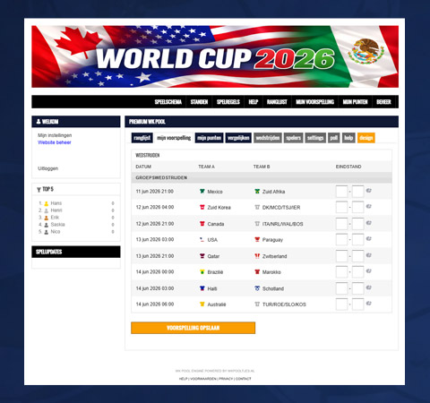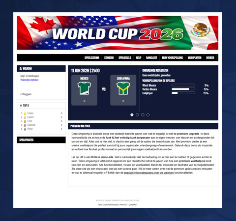 De WK Pool premium hebben wij speciaal ontwikkeld als aanvulling op ons whitelabel pakket. Het is een goedkopere oplossing bedoeld voor kleine bedrijven. Ben je op zoek naar een echte whitelabel oplossing? Bekijk dan ons aanbod op https://www.whitelabelpool.nl/